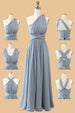Das A-Linie brautjungfernkleid mit einer Schulter, V-Ausschnitt und Neckholder in grau-blau ist vielseitig und lässt sich auf verschiedene Weisen tragen. Perfekt für Hochzeiten, Bälle oder besondere Anlässe – ein elegantes, wandelbares Kleid für unvergessliche Momente.