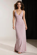 Einfaches Hellrosa Etui Langes Abendkleid mit V-Ausschnitt