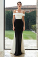 Einfaches Schwarz-weißes Patchwork Meerjungfrauen Schulterfreies Langes Ballkleid