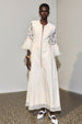 Elfenbein A-Linie Langes Hochzeitsgastkleid mit Spitze