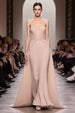 Elfenbein Langes Gerafftes Abendkleid aus Satin mit Spaghettiträgern