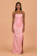 Blush Trägerloses Etui Satin Langes Brautjungfernkleid mit Rüschen