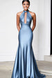 Etui Grau Blau Neckholder Trägerloses Gala Ballkleid