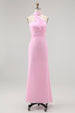 Etui Eine Schulter Blush Langes Brautjungfernkleid mit Luftschlange