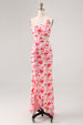 Etui Rotes Kleid für Hochzeitsgäste mit einer Schulter und Blumendruck