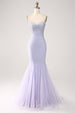 Flieder Meerjungfrauen trägerloses perlenbesetztes langes Ballkleid