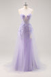 Flieder Trägerloses Korsett Ballkleid mit abnehmbarem Overlay