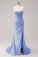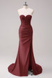 Fuchsia Meerjungfrau trägerloses gerafftes Langes Ballkleid mit Schlitz