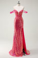 Fuchsia Meerjungfrauen Pailletten Schulterfreies Ballkleid