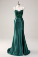 Funkelndes dunkelgrünes Meerjungfrauen Neckholder Korsett Langes Ballkleid mit Schlitz