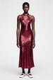 Funkelndes Dunkelrotes Pailletten Neckholder Hochzeitsgastkleid