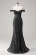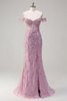 Funkelndes Dusty Rose Mermaid Schulterfreies Langes Ballkleid mit Schlitz