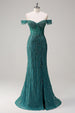 Dieses funkelnde, schulterfreie Dusty Rose Meerjungfrauen-Ballkleid mit Schlitz verleiht Ihnen bei jeder festlichen Gelegenheit einen glamourösen Auftritt. Perfekt für Hochzeitsfeiern, Abschlussbälle oder Abendpartys – ein elegantes Kleid, das Ihre Schönheit betont.