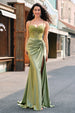 Dieses Meerjungfrau-Linien Ballkleid in Armeegrün mit Spaghettiträgern, Spitzenapplikationen und Korsett ist perfekt für Hochzeitsfeiern, Abschlussbälle, Abendpartys und andere besondere Anlässe. Der Schlitz und die glamourösen Pailletten verleihen dem Kleid einen verführerischen, eleganten Look.