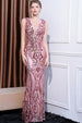 Funkelndes rosa Langes Meerjungfrauen V-Ausschnitt geblümtes Ballkleid