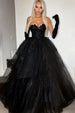 Funkelndes Schwarzes Langes Trägerloses Tüll Ballkleid mit Rüschen