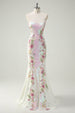 Funkelndes Weißes Geblümtes Trägerloses Meerjungfrauen Langes Ballkleid
