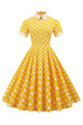Gelbes Polka Dots Frühlingskleid der 1950er Jahre