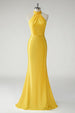 Gelbes Meerjungfrauen Neckholder Satin Langes Ballkleid