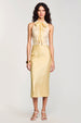 Gelbes Neckholder Bodycon Midi Kleid mit Schleife für Hochzeitsgäste