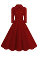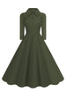 Gelbes Peter-Pan-Kragen Langärmeliges A-Linie Midikleid aus den 1950er Jahren