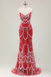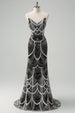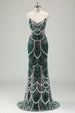 Glitzer Dunkelgrün Meerjungfrau trägerloses Pailletten Langes Korsett Ballkleid mit Perlen