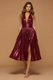 Glitzerndes Burgunderrotes Metallic Neckholder A-Linie Festtags-Partykleid mit Schlitz