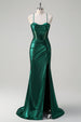Glitzerndes dunkelgrünes Meerjungfrauen korsett gerafftes Metallic Ballkleid mit Schlitz