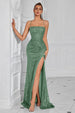 Glitzerndes Goldenes Pailletten Meerjungfrauen Langes Ballkleid mit Schlitz