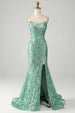 Glitzerndes Langes grünes Pailletten Kleid mit Schnürrücken Meerjungfrau Ballkleid mit Schlitz