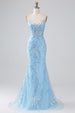 Dieses atemberaubende Ballkleid in funkelndem Hellblau ist ein wahrer Traum für festliche Anlässe! Die figurbetonte Meerjungfrauen-Silhouette mit Spaghettiträgern verleiht Ihrem Auftritt glamouröse Eleganz.