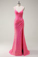 Glitzerndes pink Pailletten Meerjungfrauen Ballkleid mit Schlitz