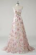 Glitzerndes rosa trägerloses Pailletten Abendkleid mit Blumenmuster