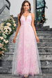 Glitzerndes rosa A-Linie Ballkleid mit V-Ausschnitt