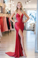Glitzerndes Rotes Figurbetontes Ballkleid mit Pailletten und Schlitz