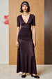 Glitzerndes Schwarzes A-Linie Hochzeitsgastkleid mit V-Ausschnitt