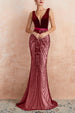 Glitzerndes schwarzes Meerjungfrauen Ballkleid mit tiefem V-Ausschnitt und offenem Rücken