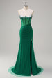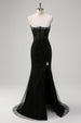 Glitzerndes schwarzes Meerjungfrauen Spaghettiträger Korsett perlenbesetztes langes Ballkleid mit Schlitz
