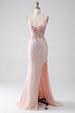 Glitzer rosa perlenbesetztes Meerjungfrauen Ballkleid mit Schlitz