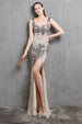 Gold Meerjungfrau Pailletten V Hals Ballkleid