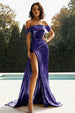 Gold Schulterfreies Etui Abendkleid aus Metallic Satin mit Schlitz