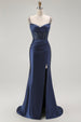 Goldenes Meerjungfrau Spaghettiträger Korsett Plissee Langes Ballkleid mit Schlitz