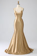 Goldenes Meerjungfrauen Spaghettiträger Satin Ballkleid mit Schnürung