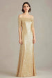 Goldenes Schulterfreies Etui Ballkleid mit Pailletten