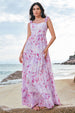 Grau Lila geblümte Spaghettiträger A-Linie Brautjungfernkleid