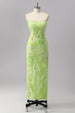 Grüne Etui Pailletten Spaghettiträger Perlenbesetztes Ballkleid mit Schlitz