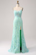 Grüne Meerjungfrau Spaghettiträger Pailletten Langes Ballkleid mit Schlitz