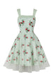 Grünes kariertes Rockabilly Kleid aus den 1950er Jahren mit Blumendruck