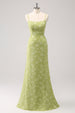 Grünes Meerjungfrauen Brautjungfernkleid mit Stickerei und Schnürung am Rücken