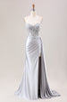 Grünes Meerjungfrauen Plissee Langes Korsett Satin Ballkleid mit Schlitz